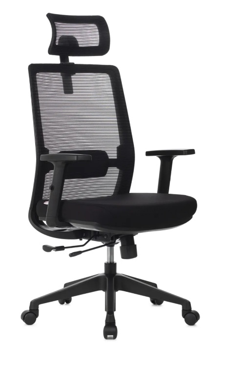Cadeira Vitalis Plus BLM142, Telada é um modelo executivo desenvolvido para oferecer conforto, ergonomia e sofisticação ao ambiente de trabalho, com apoio de cabeça em tela que permite regulagem de altura e rotação, encosto em tela de nylon com apoio lombar estofado ajustável, e assento em espuma injetada D55 revestido em tecido com carenagem braços em nylon possuem regulagem de altura e apoio em PU macio, mecanismo sincronizado com trava em três posições e slider possibilita regulagem horizontaL, pistão preto classe 3 certificado BIFMA.