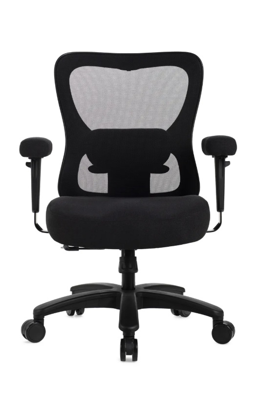 Cadeira Axis BLM159 Plus Size é um modelo robusto e sofisticado, suporta até 140 kg. com encosto em tela de poliéster que inclui apoio lombar estofado com tensor e regulagem de altura, assento estofado e revestido em tecido, composto por um bloco de 25 molas ensacadas e espuma laminada de alta densidade, braços também são estofados e revestidos em tecido, com regulagem de altura em seis posições, mecanismo sincronizado com três travas permite ajustes personalizados, enquanto o pistão preto classe 4 certificado BIFMA assegura segurança e durabilidade. A base reforçada de nylon de 350 mm e os rodízios de 75 mm em PU