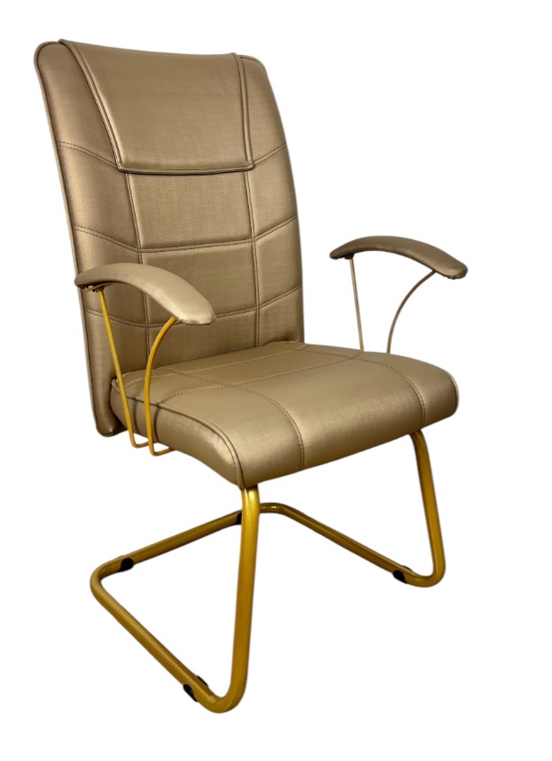 Poltrona fixa de alto padrão, ideal para ambientes corporativos, salas de reunião ou recepção. Estrutura elegante com acabamento em pintura dourada e revestimentos personalizáveis, combinando conforto, sofisticação e durabilidade.
